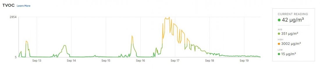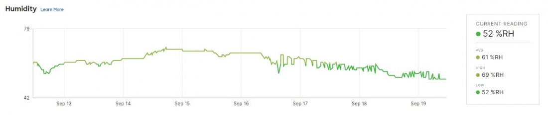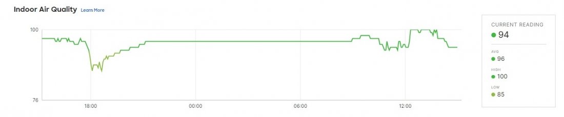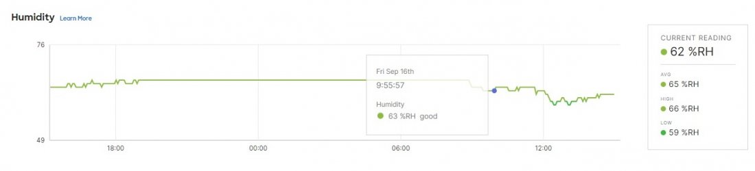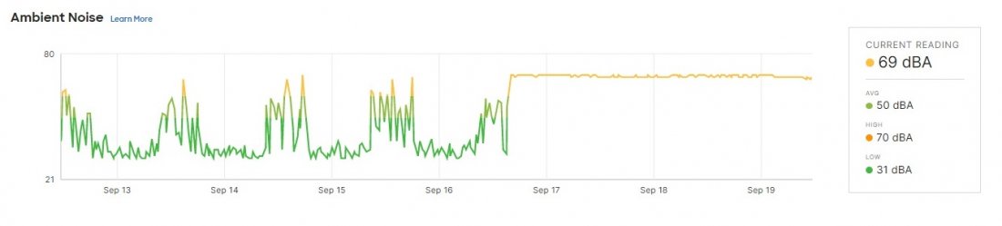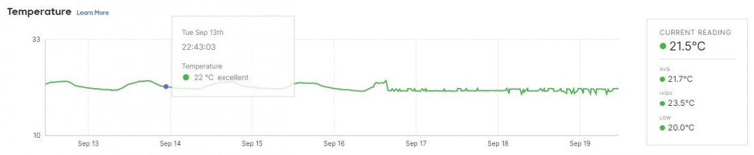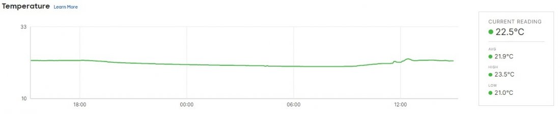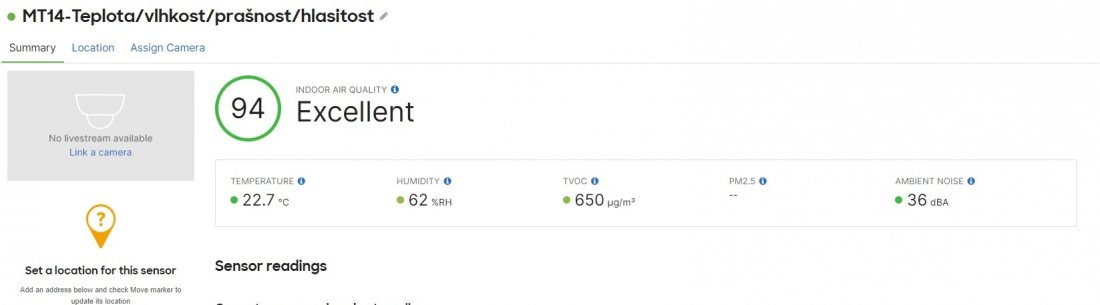 Pár dnů jsme testovali čidlo MT14 - Kvalita prostředí , které vám dá informace o kvalitě vzduchu, tedy teplotu, vlhkost, prašnost a hlučnost. Byli jsme zvědaví, jak naše serverovna projde. Následující screenshoty jsou z online administračního prostředí Meraki, které ukazuje stav před a o tři dny po.